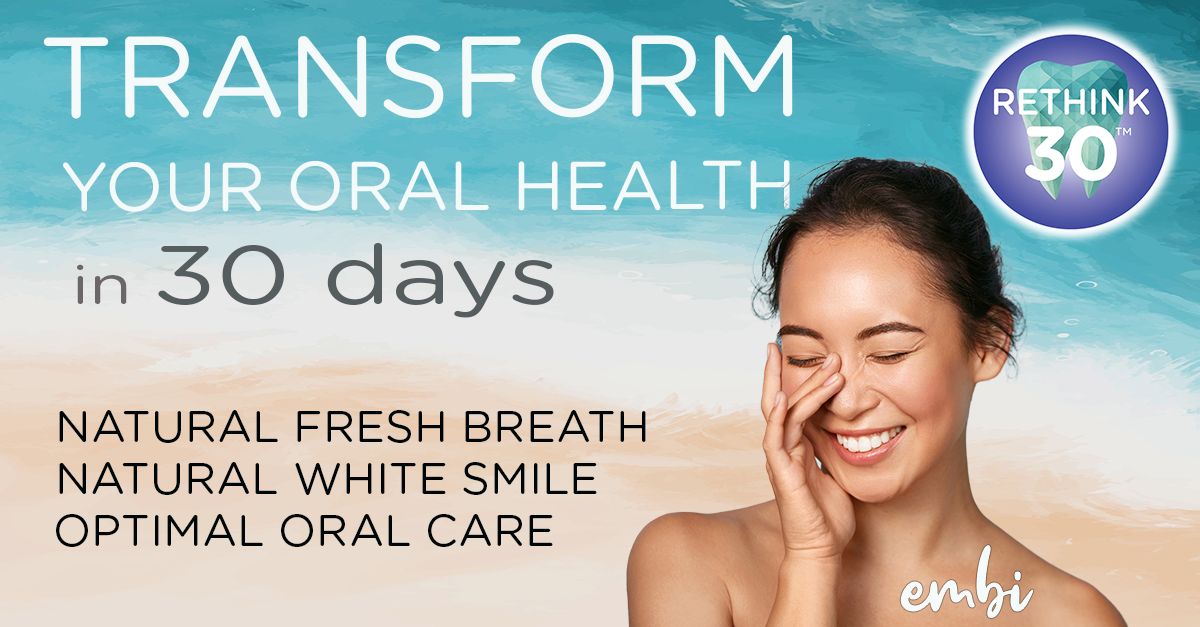 All you need to do is choose the bundle that is best for you from the list below. The only difference is the embi tongue scraper of your choice. Choose from First Step Disposable or Australia's best selling tongue scraper - embi EDGE or for those who want the natural healing properties of pure copper choose CU29. All RETHINK 30 bundles come inside this wonderful box. Orders over $40 come with free postage and tracking.